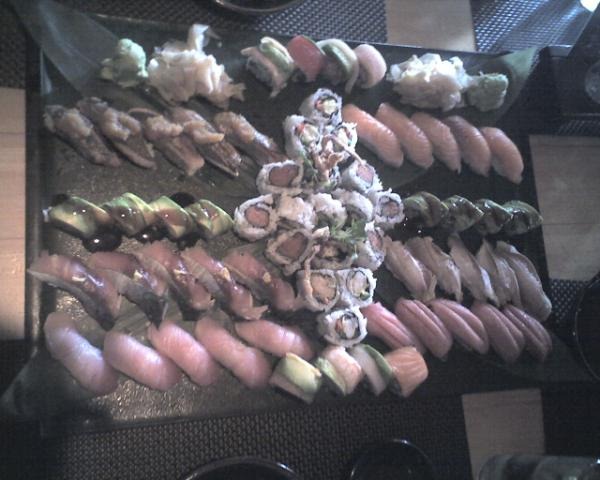 A quick snap of a sumptuous sushi mountain (well, more like a plane) served to us during a customer meeting:
